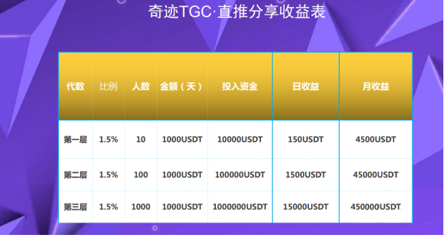 原因在于,它根本不是一个简单的游戏项目,别看它打着“区块链”的口号,宣称采用了什么DPOS共识机制,联合打造奇迹TGC超级生态的面儿话,它实际不过就是一个披着“伪游戏”外壳,靠拉人头赚钱的资金盘而已。