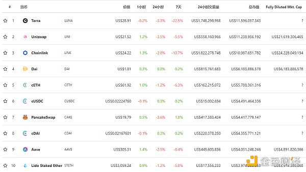 DeFi项目锁定资产前十排名及锁仓量,数据来源:Debank