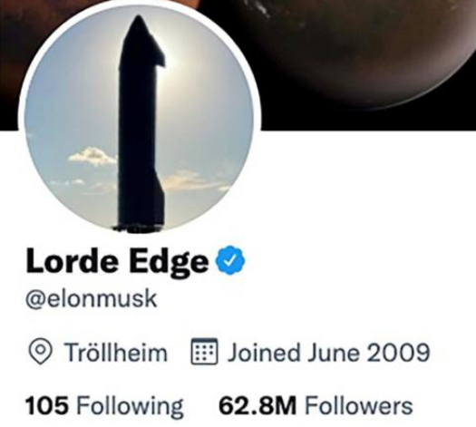 这不,在前两天,世界首富特斯拉首席执行官埃隆·马斯克(Elon Musk)一度将自己的推特名字改为“Lorde Edge”。