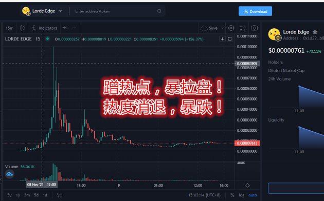 这样的币种背后基本上都有庄家操控,搞的就是一锤子买卖,各种忽悠人疯狂的冲进来, 你一进来就撤池子,实质和“杀猪盘”无差别,所以,不要看到群里有人喊单、拉盘就往里冲,要冷静谨慎。