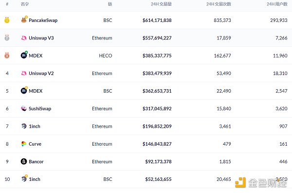 过去24小时去中心化交易所的交易量数据来源:Debank