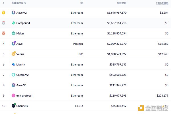 DeFi项目锁定资产前十排名及锁仓量,数据来源:Debank