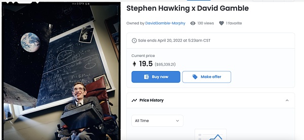 本次进军 NFT 行业,第一个推出的就是著名的斯蒂芬霍金照片。
