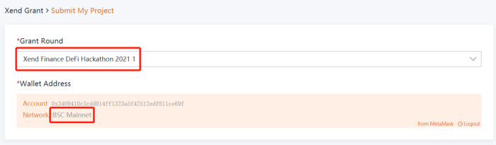 3. 选择“ Xend Finance DeFi Hackathon 2021 ”,连接钱包。